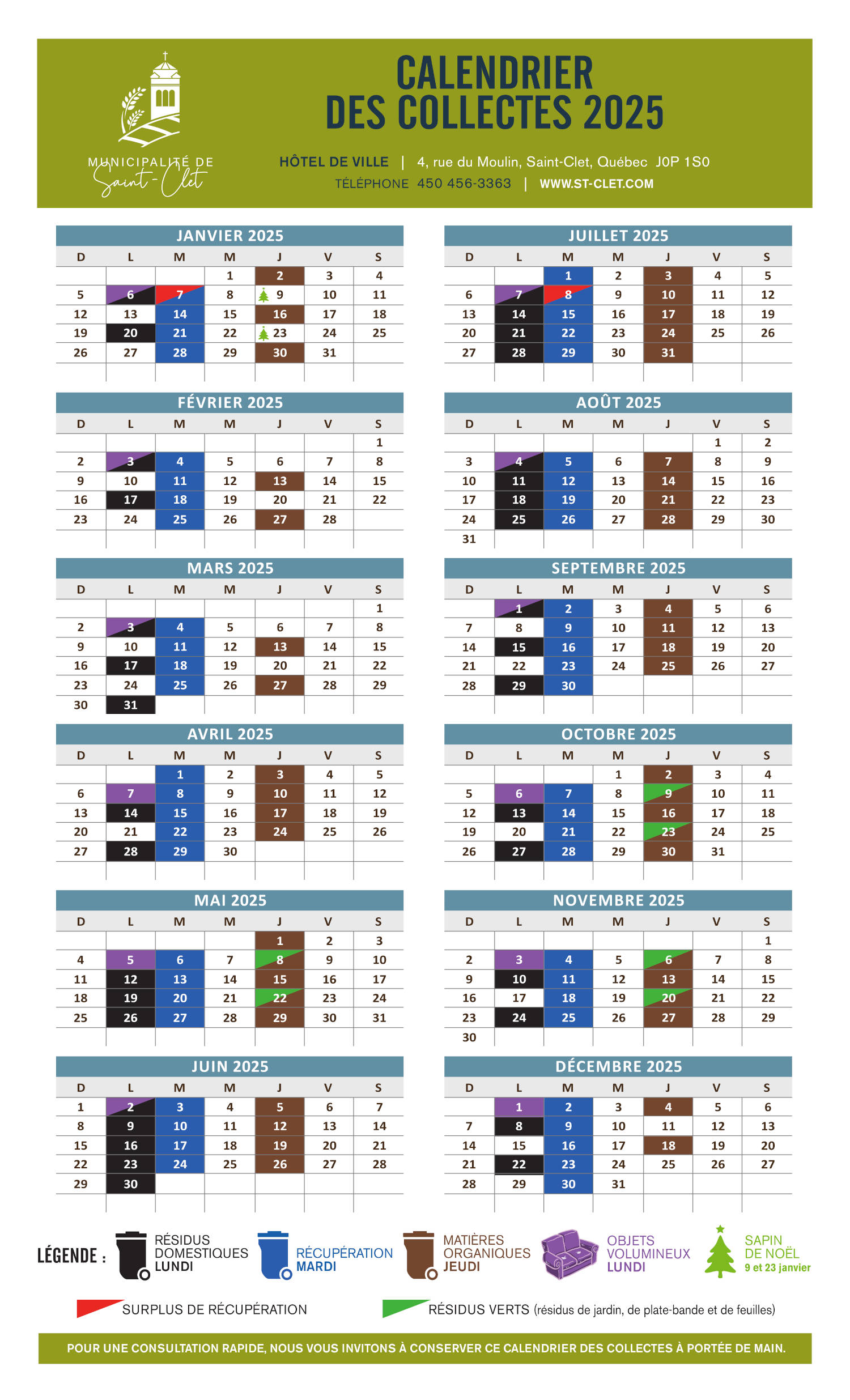 Calendrier des collectes 2025